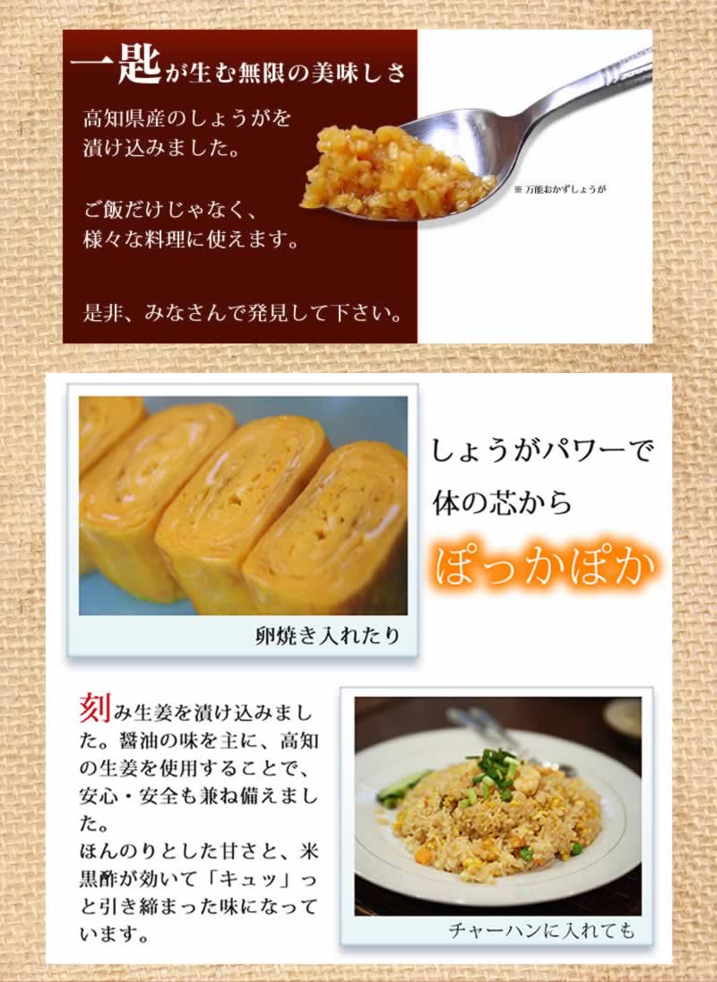 ●焼き魚の付け合わせやお豆腐の薬味に。また、お好み焼きの具材や、牛丼の薬味としてもご利用頂けます。
